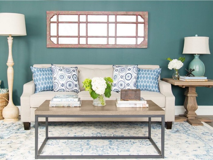 Чтобы интерьер не выглядел перегруженным и смотрелся гармонично, расстояние между предметами мебели должно быть не менее 30-ти и не более 60-ти сантиметров. Это правило непосредственно касается расположения дивана и журнального столика. Тут ещё важно учитывать следующий фактор. Иногда диван используется, как спальное место, раскладывается или выдвигается. Поэтому должно быть пространство для того, чтобы сдвинуть столик на ночь в сторону и ненароком не удариться о него в тёмное время суток.